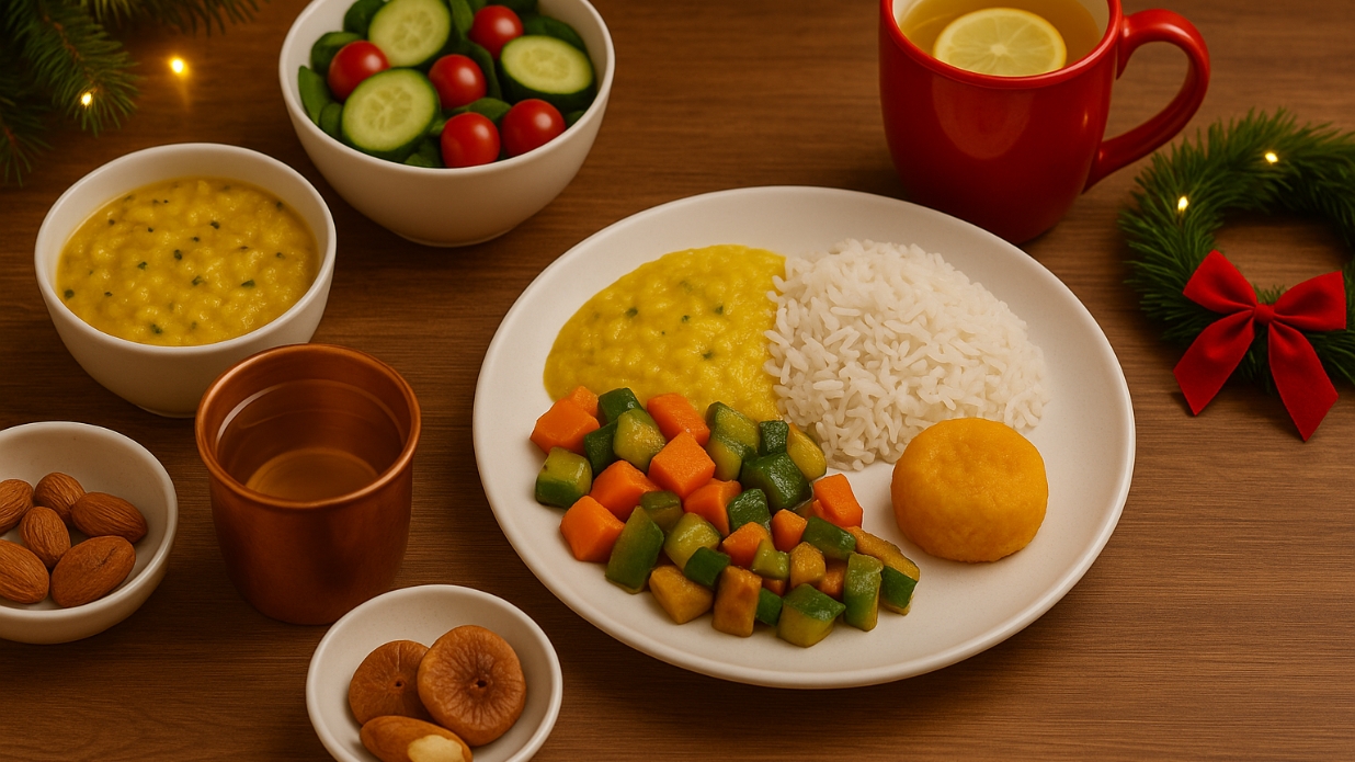 Why this helps: Keeps your gut calm, reduces acidity, supports hormones, and prevents bloating — especially useful during festive overindulgence.