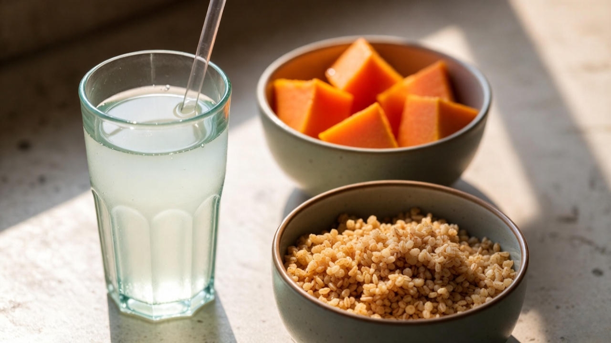 - Ginger + dink tea OR cinnamon tea → supports digestion and reduces bloating the next morning